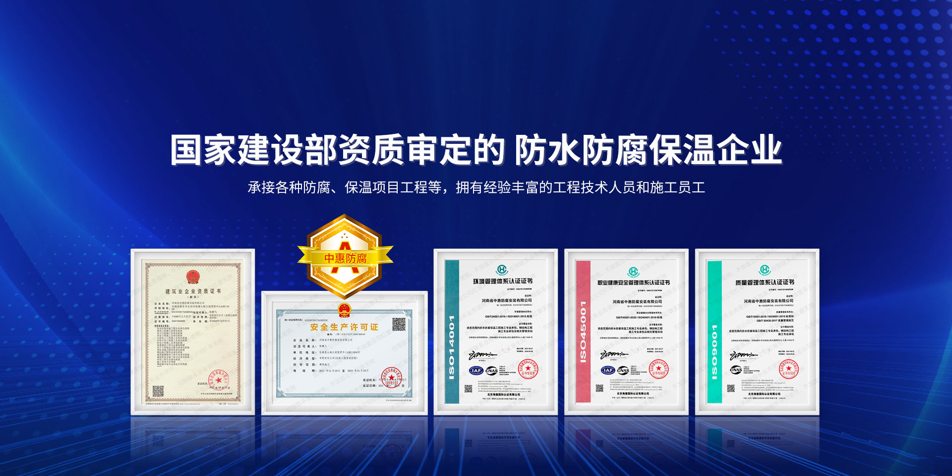 公司經營范圍:防水防腐保溫工程;消防設施工程;建筑裝修裝飾工程;建筑機電安裝工程;電力工程;建筑工程;石油化工工程;工業清洗工程;油罐清洗工程;鋼結構工程;環保工程;模板腳手架工程;電纜防火封堵、防污閃噴涂、外墻外保溫工程;各類施工勞務作業;設備維修、船舶鉚焊、涂裝;電力工程材料、建材、防水材料、防火材料、防腐保溫材料銷售,并相繼通過了GB/T19001-2008idtISO9001:2008GB/T50430-2007質量管理體系認證證書。GB/T24001-2004idtISO14001:2004環境管理體系認證證書。GB/T28001-2011idtOHSAS18001:2007職業健康安全管理體系認證證書。公司是中國防腐蝕于防護協會、中國施工企業管理協會、電力協會和中國鋼結構防水協會會員單位。 公司的經營業務涵蓋了石油、化工、電力、冶金、煤炭、船舶、國防、燃氣、水利、環保、交通運輸、航空及國防軍工和輕紡市政等行業的防腐保溫絕熱設備。鋼結構安裝、防火、防水、金屬噴鍍、聚脲噴繪、陰極保護、防滲透堵漏、玻璃鋼及各種磚版材料襯里、橡膠襯里、煙氣硫和耐酸溶劑腐蝕等工程施工。公司連續十年榮獲“省市先進施工企業”“安全生產先進單位”“重合同,守信用企業”和“AA***資質企業”的稱號。2000年被命名為市級文明單位,2002年被國家工商行政管理局命名為“重合同,守信用的企業”、被中國工業防腐蝕技術協會命名為“防腐蝕企業,能源節約及環境保護領域有豐富的經驗和***的業績。工程一次交驗合格率100%。其中攀枝花鋼鐵公司煉鐵廠四號高爐及熱風爐防腐工程、上海寶鋼公司煤氣柜防腐工程、撫順石油一廠裝置防腐項目、齊魯石化公司稀烴廠高塔防腐工程、吉林化學工業公司煉油廠油罐防腐工程、天津石化熱電廠六號爐頂棚聯絡管保溫工程、大慶油田(太倉)力神泵業工程、中國化學工程第十一建設工程、中原油田勘探局工程、中國石化銷售有限公司華北分部、魯皖輸油管道工程、貴州開磷息烽合成氨工程、陜西黃陵煤化工程、中國石油天然氣西部管道塔里木輸油工程、邯鋼集團邯寶鋼鐵公司煉鐵工程、德州供電工程、吉寶(南通)船廠工程,偃師華潤熱力工程、鄭州熱力總公司。 河南省中惠防腐安裝有限公司愿以豐富的施工經驗,***的技術,***的設備,***的管理,***的服務,竭誠為國內外廣大的用戶提供***滿意、******的工程作品。 我公司愿與國內外同仁一道,團結協作,共同推進防腐蝕行業發展! 公司地址:河南省長垣縣建設路北段360號 固定電話:0373-8866488 郵編:453400 網址:http://www_zhff_com_cn.game6199.com